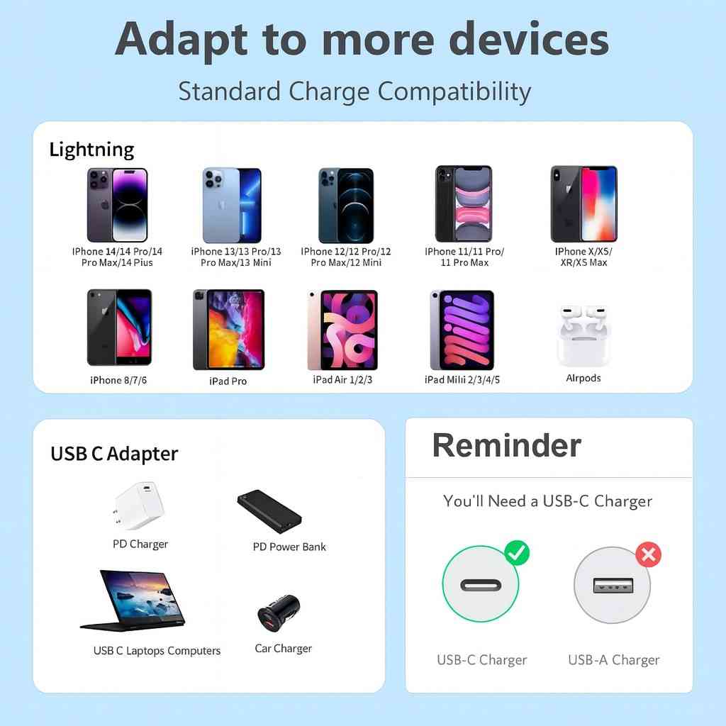 iPhone Data cable is Apple’s exclusive small, reversible 8-pin connector, and it is a USB-A cable. From the iPhone 5 to the iPhone 14, all the devices need this model to charge up. It supports up to 20W or 30W, and it can charge your devices in around an hour. Its connector is Type-C and Lightning.