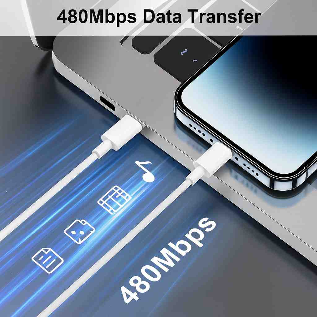 iPhone Data cable is Apple’s exclusive small, reversible 8-pin connector, and it is a USB-A cable. From the iPhone 5 to the iPhone 14, all the devices need this model to charge up. It supports up to 20W or 30W, and it can charge your devices in around an hour. Its connector is Type-C and Lightning.